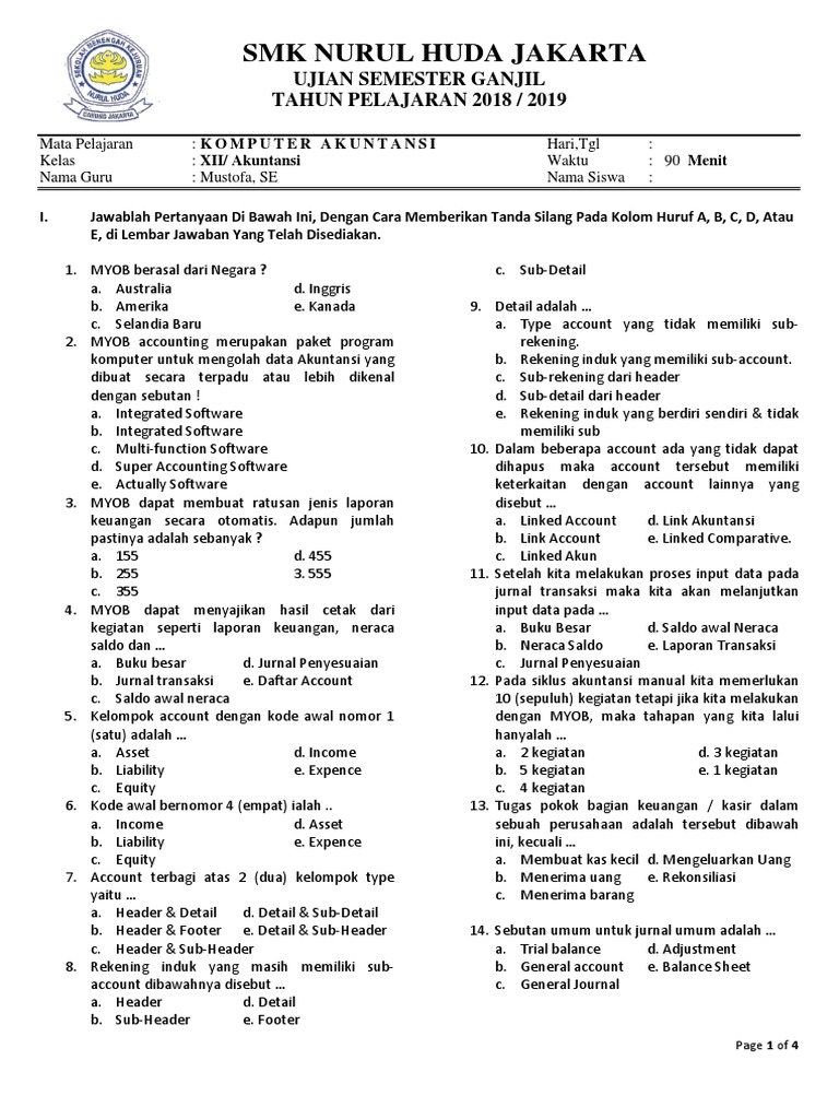 Soal uts komputer akuntansi kelas 11.